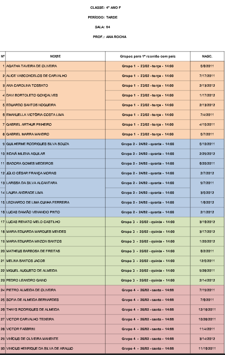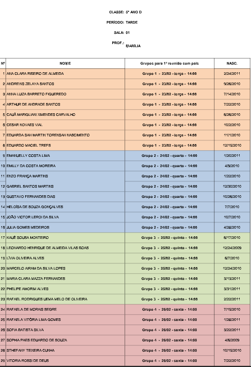 Confira a lista das turmas, dia e horário da Reunião que também está disponível no mural da escola.